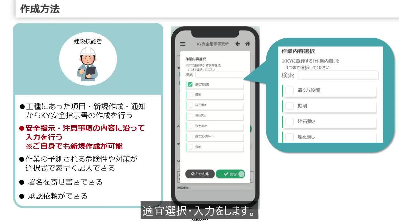 D-ST動画は災害予防のため弊社の安全遵守事項をもれなく伝達し、当日の施工内容にあった動画を手軽に視聴していただくことを目的としています。また、本動画は弊社現場の標準的なルールと安全教育を目的としており、現場毎の独自のルールや各法令に準拠し活用してください。